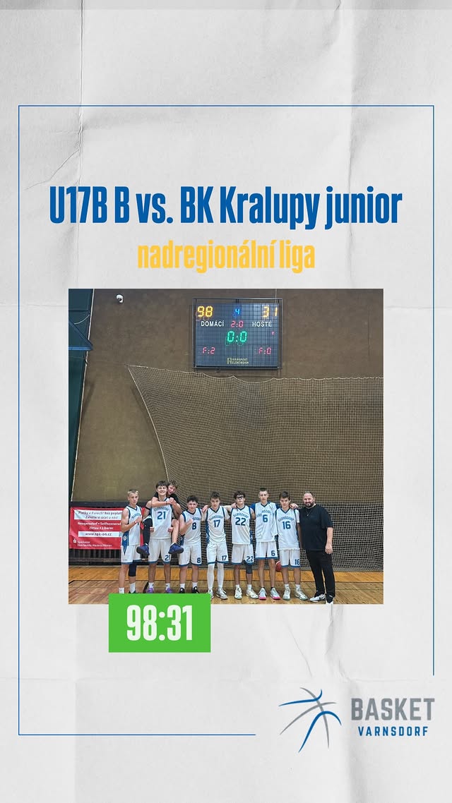 Víkendová basketbalová krasojízda pokračovala i v neděli 5. října 2025. Jako první ve sportovní hale ve Varnsdorfu ve 4. kole nadregionální ligy kadetů U17M (skupina D) proběhlo utkání TJ Slovan Varnsdorf vs BK Kralupy junior.