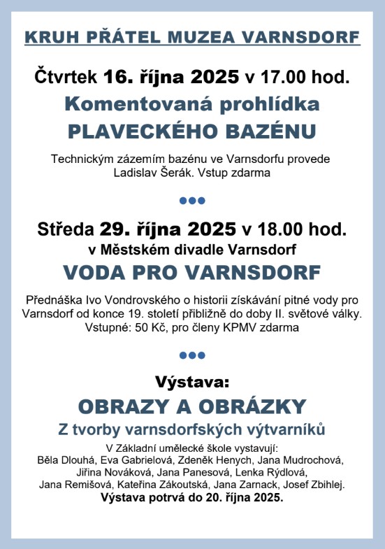 Ve středu 29. října 2025 se ve varnsdorfském Městském divadle uskutečnila další s přednášek, pořádaných Kruhem přátel muzea Varnsdorf, tentokrát na téma Voda pro Varnsdorf.