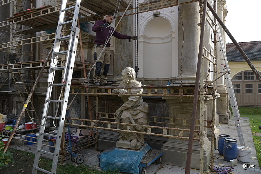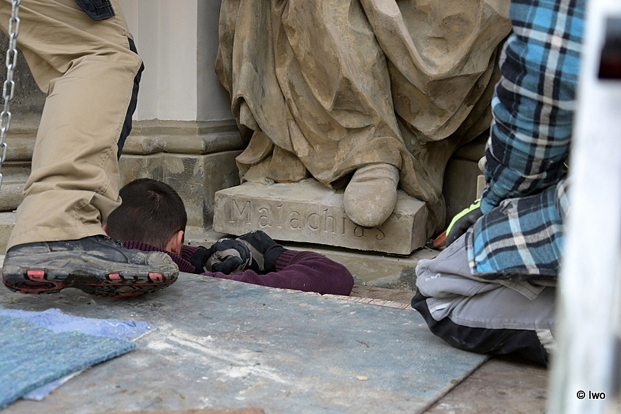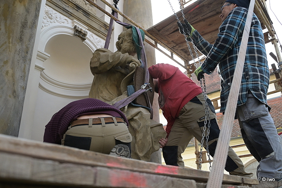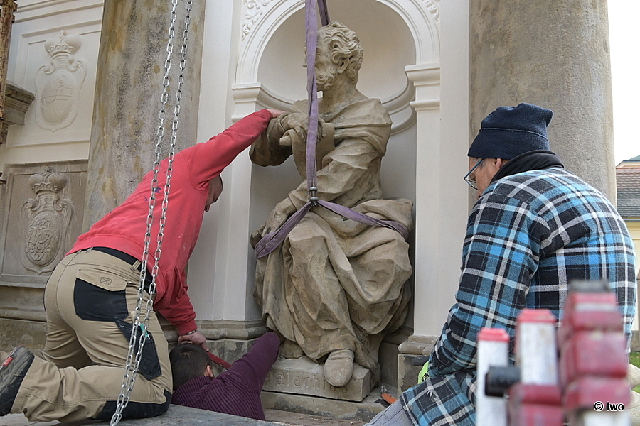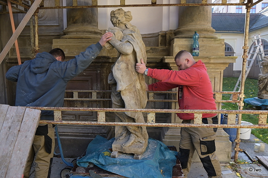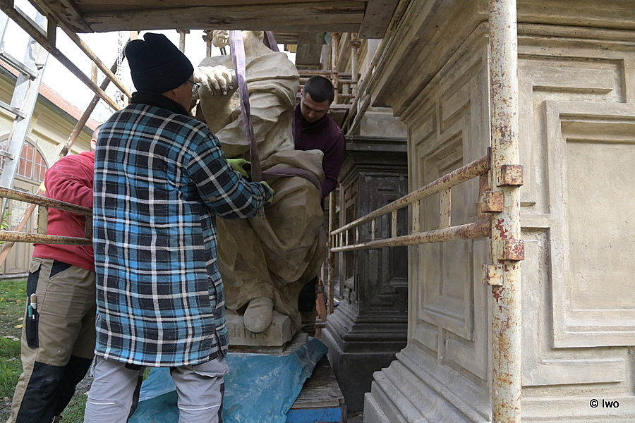 S měsícem říjnem končila letní sezóna a běžná otvírací doba, tudíž i letošní působení restaurátorského týmu. Protože sochy byly hotové, byl čas je vrátit zpět na svá místa. A já děkuji za unikátní příležitost být u toho a mít možnost takovou událost zdokumentovat.
