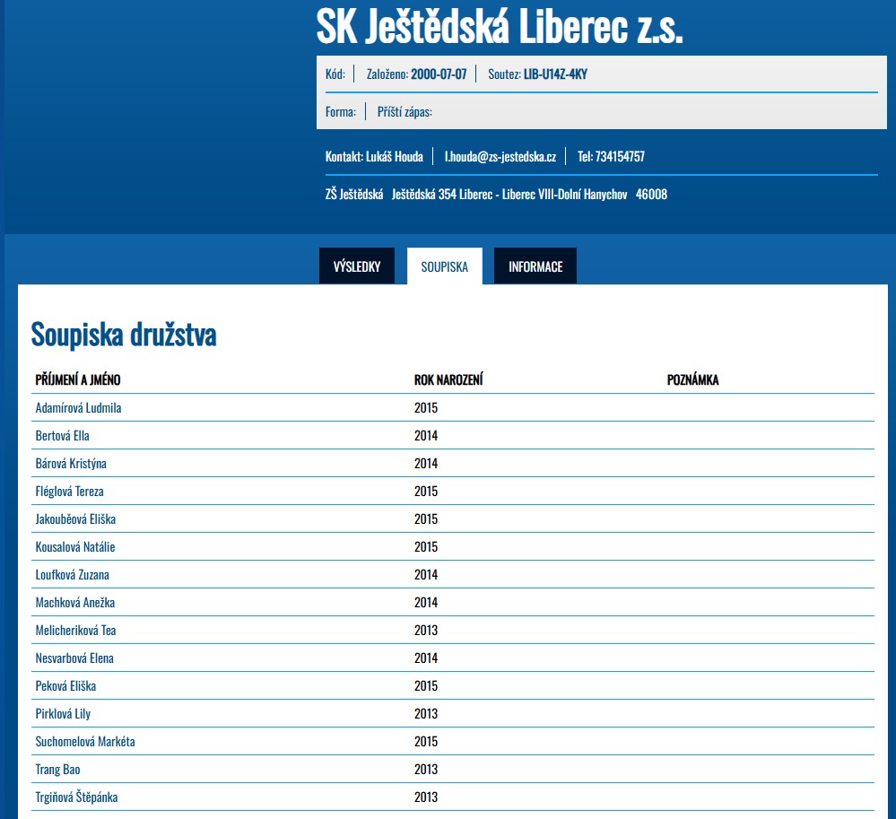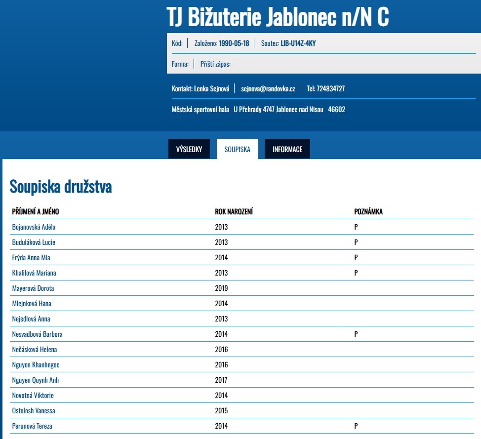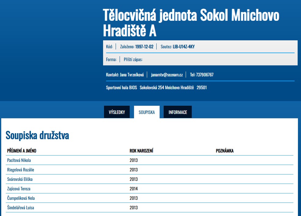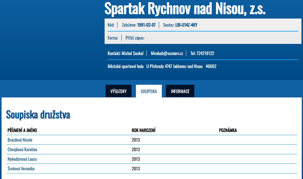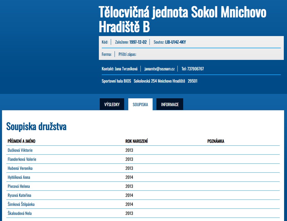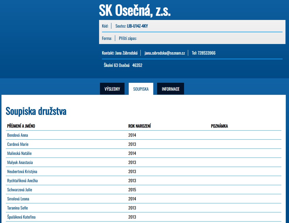 Soupisky dle webu federace. Bez záruky, ve stavu, jak tam jsou (mnohdy beze jmen), bez ohledu na to, kdo fakticky hrál a byl přítomen:
