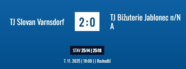 Zcela mimořádně se v pátek 7. listopadu 2025 v tělocvičně na Národní ulici ve Varnsdorfu utkaly týmy TJ Slovan Varnsdorf vs TJ Bižuterie Jablonec nad Nisou.