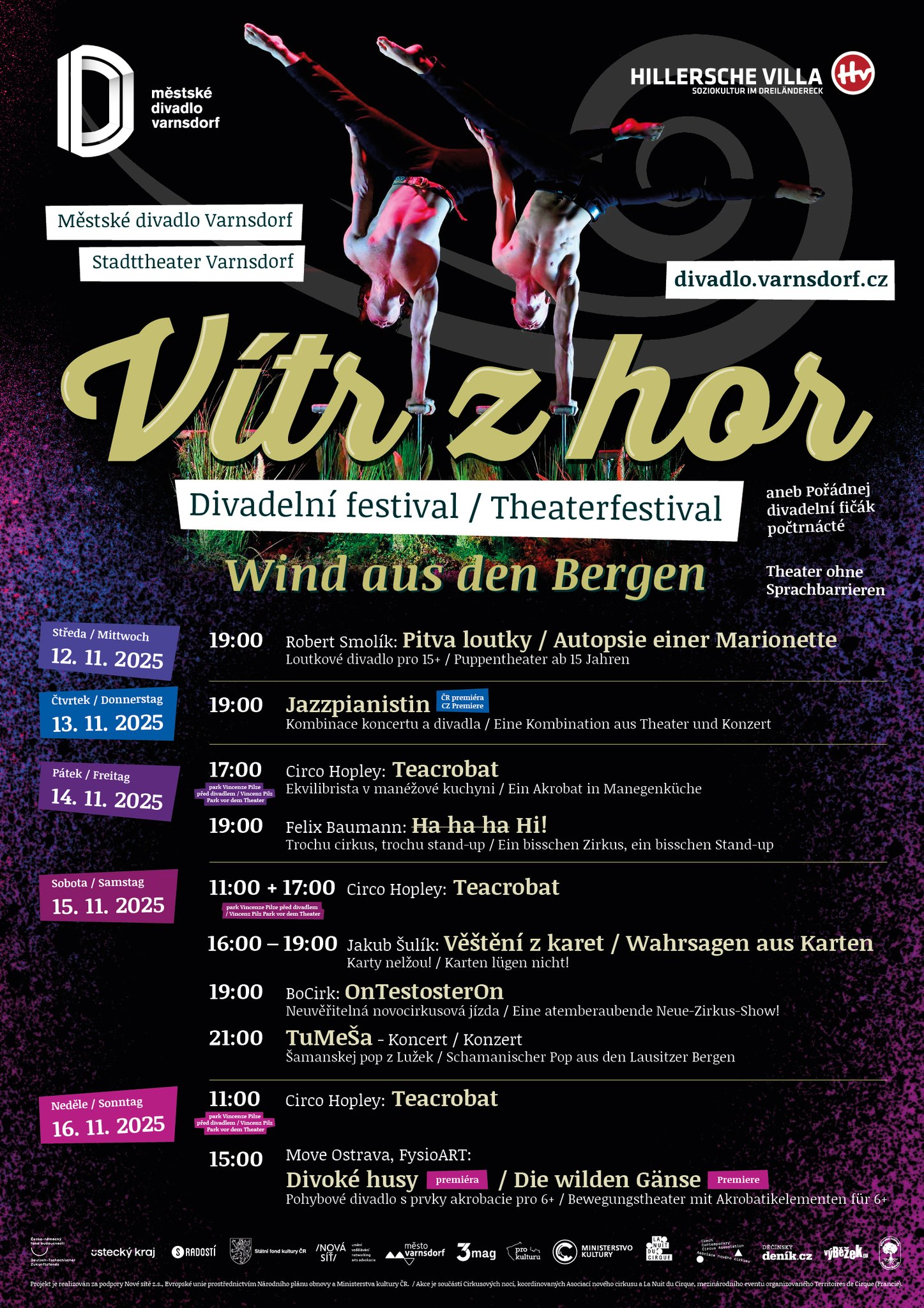 Zahájení letošního varnsdorfského divadelního festivalu VÍTR Z HOR obstaralo ve středu 12. listopadu 2025 komorní představení Pitva loutky Roberta Smolíka.