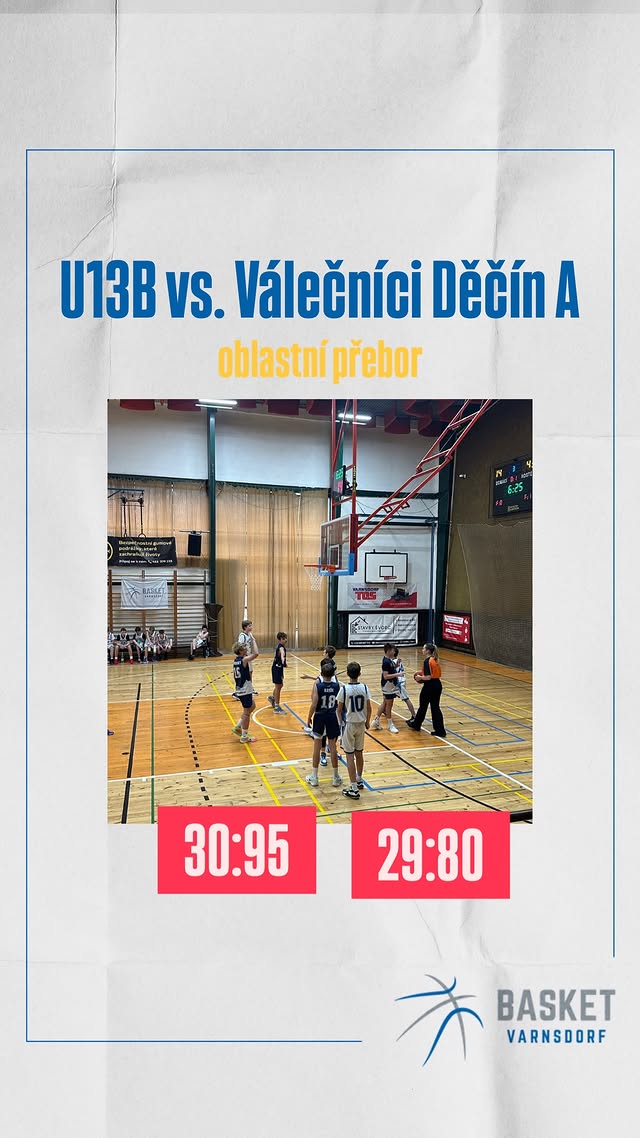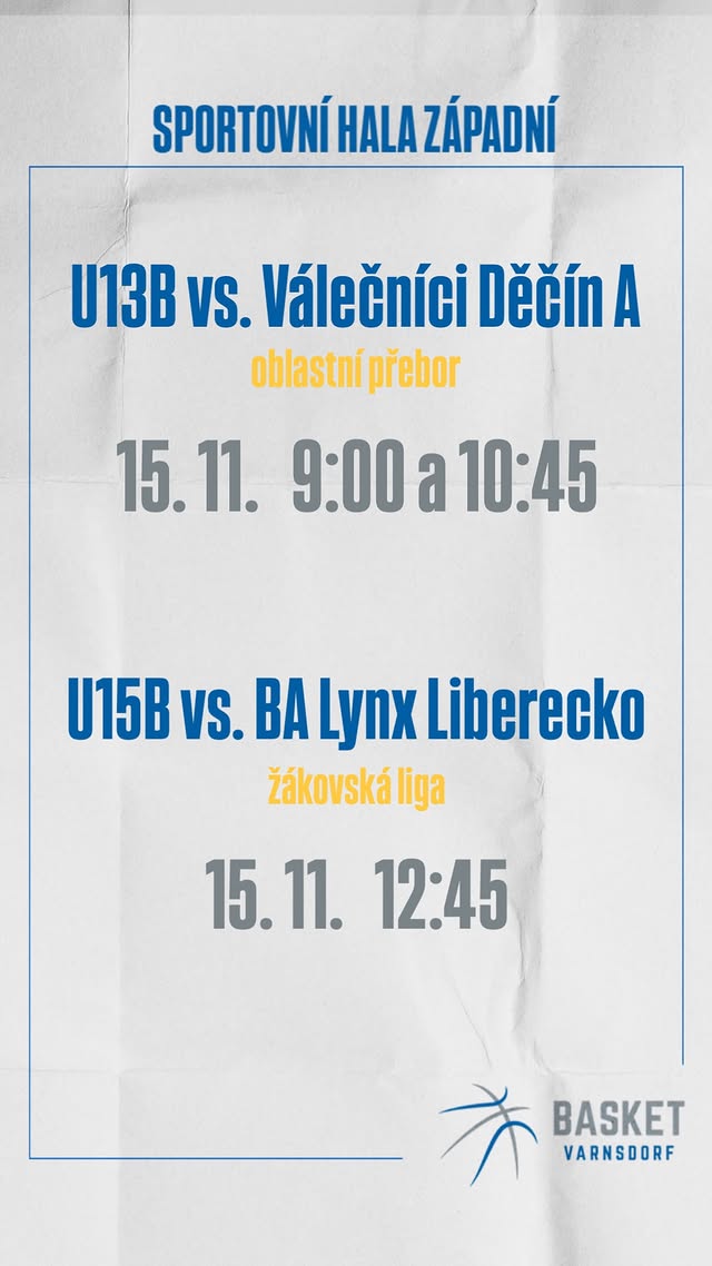 Náročný basketbalový víkend ve varnsdorfské sportovní hale zahájilo v sobotu 15. listopadu 2025 4. kolo oblastního přeboru kategorie starší minižáci U13 (skupina B), dvakrát proti sobě nastoupily celky TJ Slovan Varnsdorf a Válečníci Děčín A.
