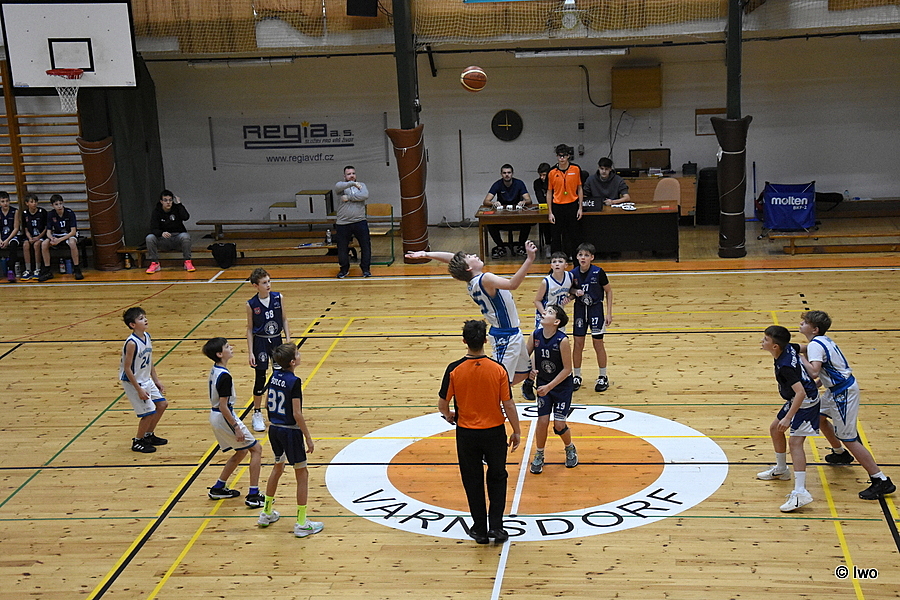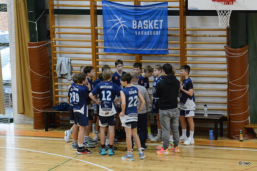 Náročný basketbalový víkend ve varnsdorfské sportovní hale zahájilo v sobotu 15. listopadu 2025 4. kolo oblastního přeboru kategorie starší minižáci U13 (skupina B), dvakrát proti sobě nastoupily celky TJ Slovan Varnsdorf a Válečníci Děčín A.