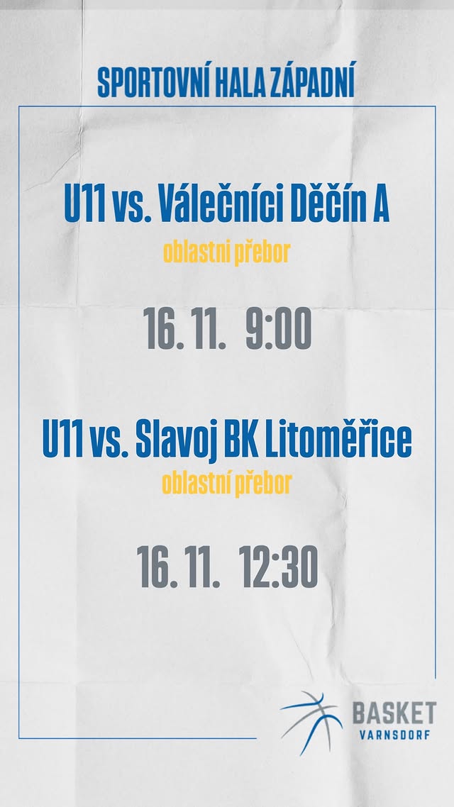 Po hektické sobotě ve varnsdorfské sportovní hale v neděli 16. listopadu 2025 basketbalové dění pokračoval, nejprve oblastním přeborem nejmladších mini chlapců U11.