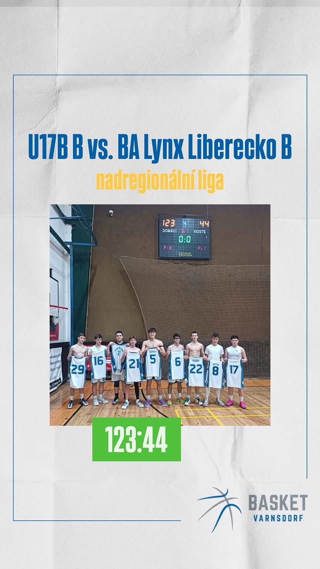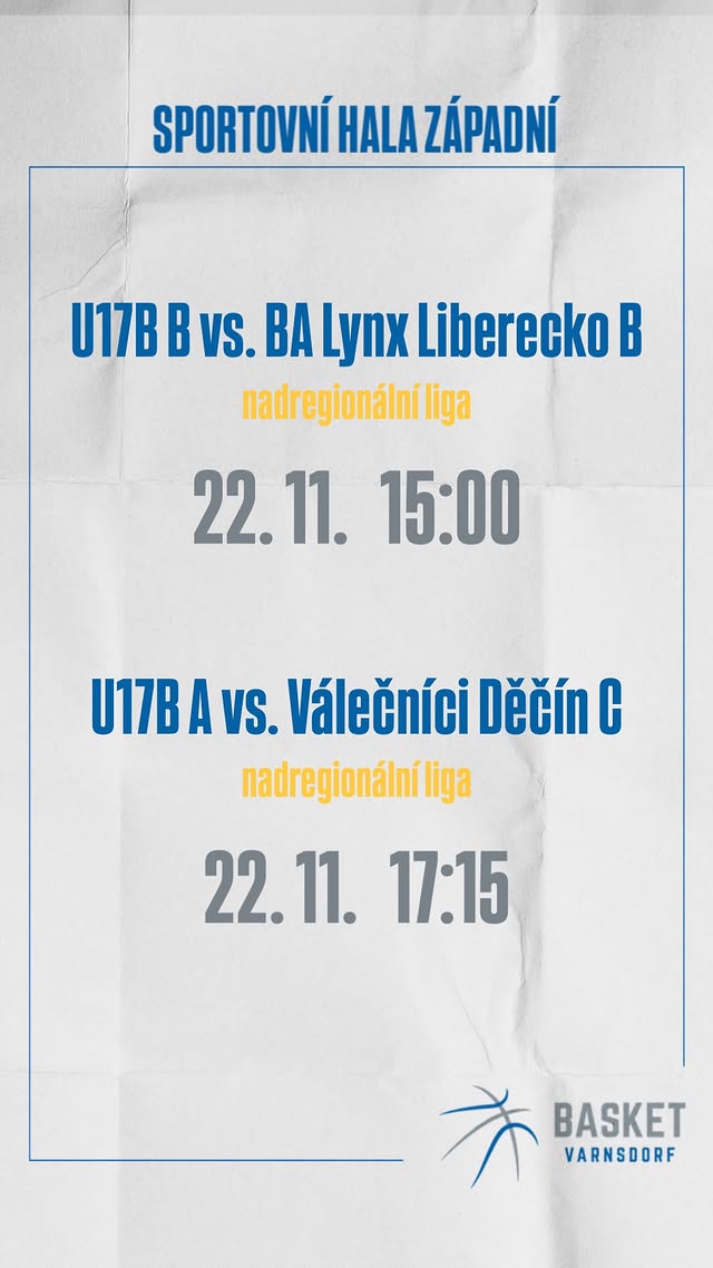 Další basketbalové dění v sobotu ve varnsdorfské sportovní hale 22. listopadu 2025 obstaralo 7. kolo nadregionální ligy kadetů U17 (skupina D) – střetla se „Béčka“, TJ Slovan Varnsdorf B vs BA Lynx Liberecko B.