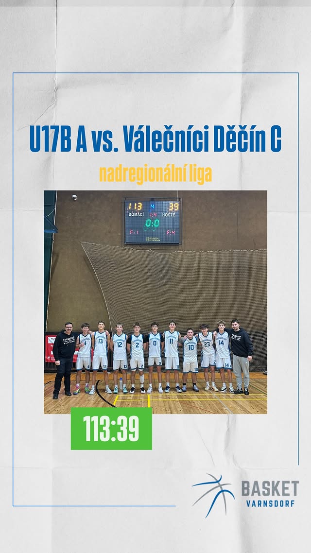 V sobotu ve varnsdorfské sportovní hale 22. listopadu 2025 zakončilo basketbalové dění další utkání 7. kola nadregionální ligy kadetů U17 (skupina D) – po „Béčku“ nastoupilo „Áčko“, TJ Slovan Varnsdorf vs Válečníci Děčín C.