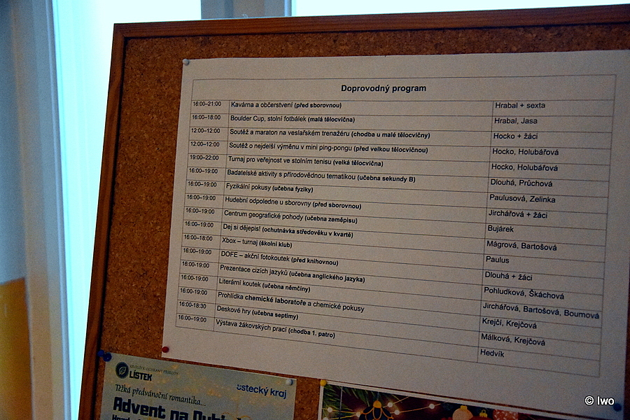 Na chodbě sice visí rozpis, co je kde k vidění, ale jakožto někomu zvenčí je vám k prdu, co je v které učebně a laboratoři, když se tu nevyznáte a nehodláte po budově bloumat, jestli na něco náhodou nenarazíte.