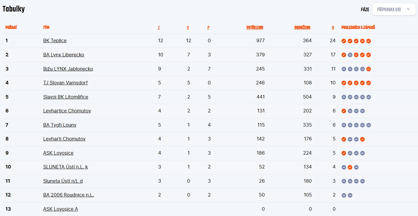 TJ Slovan Varnsdorf vs Bižu LYNX Jablonecko 46:16 (10:2 / 14:2 / 16:2 / 22:4 / 28:8 / 34:8 / 46:10)