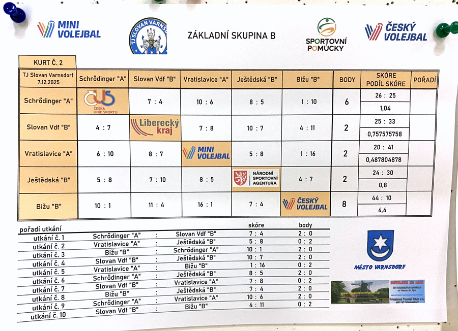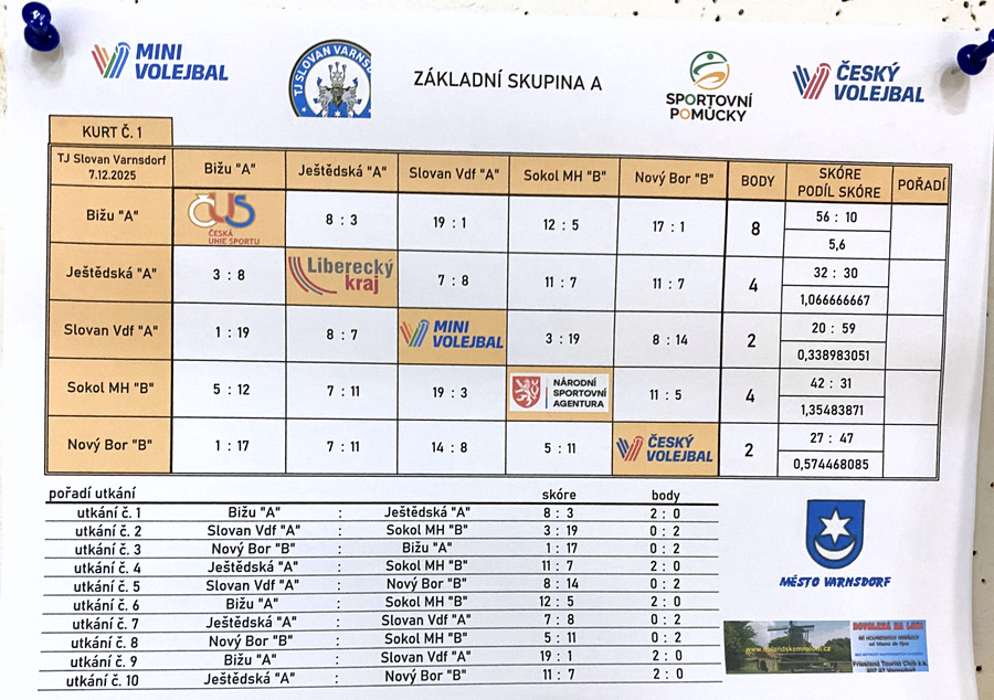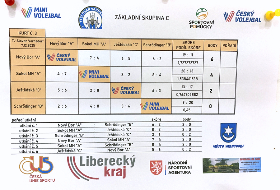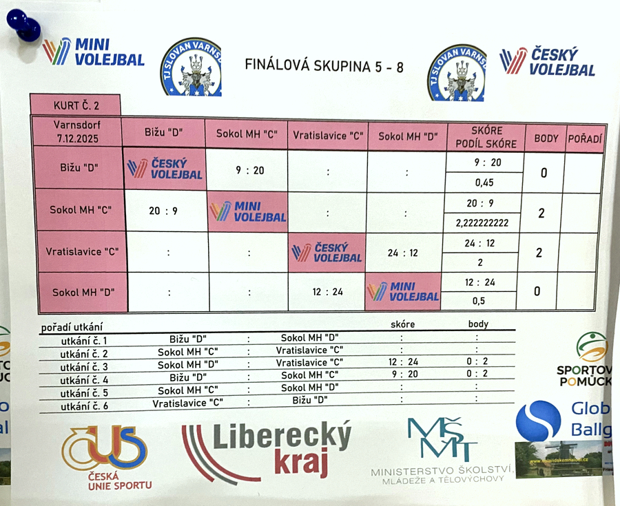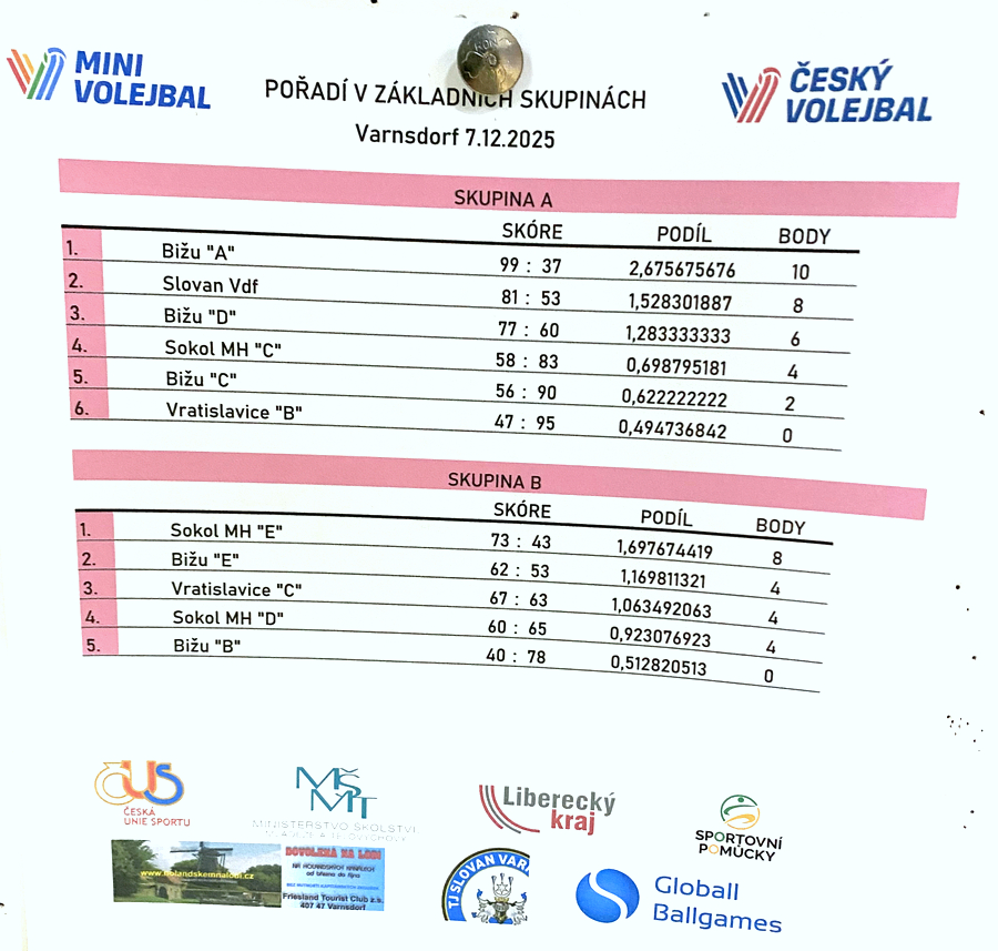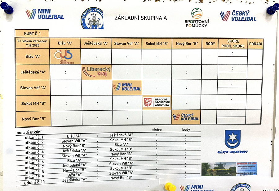V neděli 7. prosince 2025 se ve sportovní hale ve Varnsdorfu po nějaké době opět konal jeden z turnajů krajského přeboru v barevném minivolejbale.