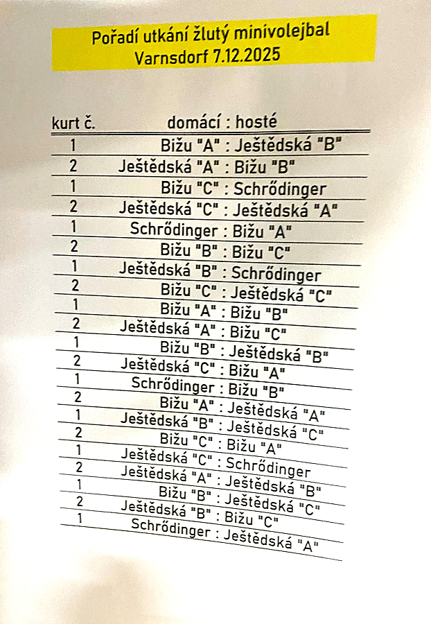 Ovšem najít, kdo je vlastně přihlášen a jak dopadla minulá kola, to je nad mé síly. První kolo (Jablonec 19.10. 2025) zde ->, druhé (Nový Bor 23.11.2025) zde ->. V odkazovaném textu zmínka „Výsledky k náhledu v aplikaci minivolejbalu“ – k tomu jaksi nemám co říct.