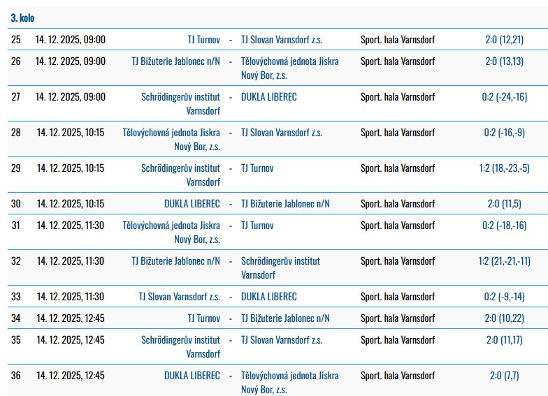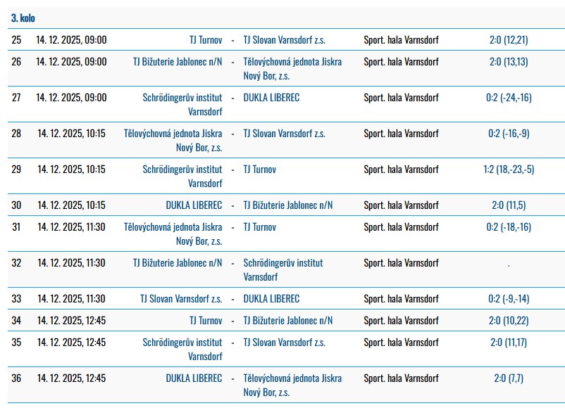 V neděli 14. prosince 2025 pokračovalo volejbalové klání krajského přeboru mladších žákyň U14 (šestek) 3. kolem, tentokrát ve varnsdorfské sportovní hale.