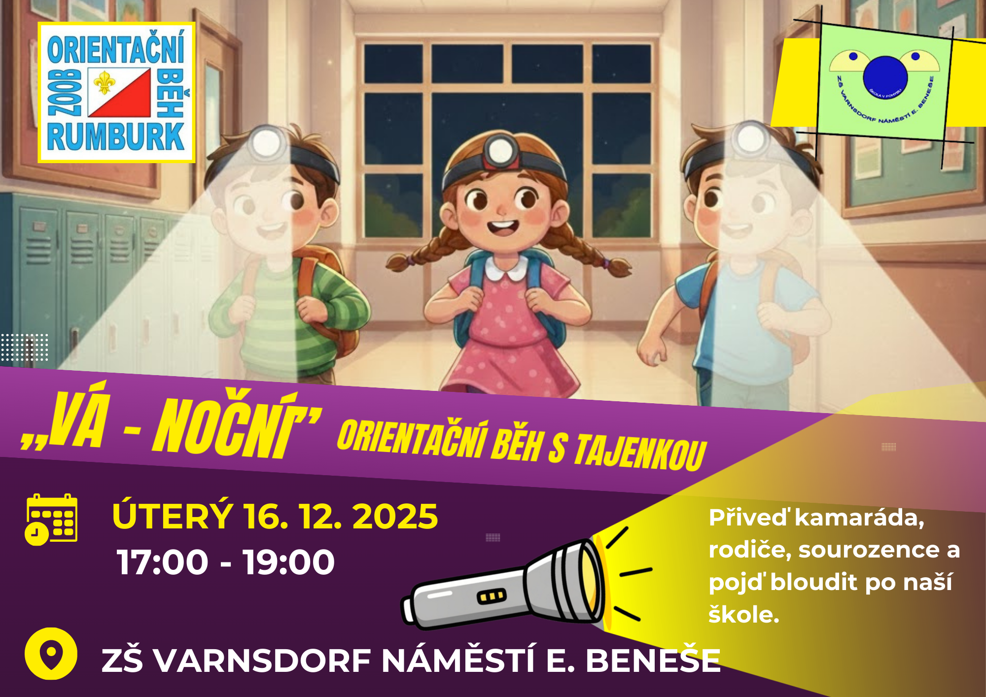Spolupráce ZŠ náměstí E. Beneše Varnsdorf s klubem orientačního běhu ZOOB Rumburk stále pokračuje a v čase vánočním se tak vrátila do nabídky v úterý 16. prosince 2025 i noční varianta běhání.