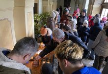 Tradice rozdávání Betlémského světla už nějakou dobu trvá (u nás poprvé 23. 12. 1989), stejně tak se ustálila řada míst, kde k jeho předávání dochází. Mezi ně už roky patří právě i Loreta v Rumburku. Jel jsem se podívat. Jen tak, nejde mi o ten konkrétní plamínek. Jde o to místo, se kterým jsem k mému přetrvávajícímu údivu propojen, jde mi o lidi, o nichž jsem věděl, že se tu s nimi mám možnost potkat. Jen tak, bez fotoaparátu. A nestačil jsem zírat – dveře se netrhly, chodba ambitu pořád plná, páter přestal dav počítat dávno před polovinou vyhrazeného času, kdy počet příchozích přesáhl stovku… Vyčíhnout vteřinu, kdy zrovna u stolku nebyl vůbec nikdo, nebylo jednoduché. Tak nějak to má prostě být. Pár rychlých cvaků telefonem: