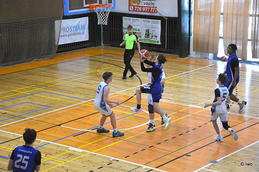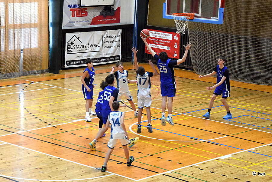 V sobotu 10. ledna 2026 zbyl z původního rozpisu ve sportovní hale ve Varnsdorfu jen jeden basketbalový zápas – v 5. kole žákovské ligy U15 se utkali kluci TJ Slovan Varnsdorf B s celkem USK Praha.