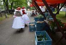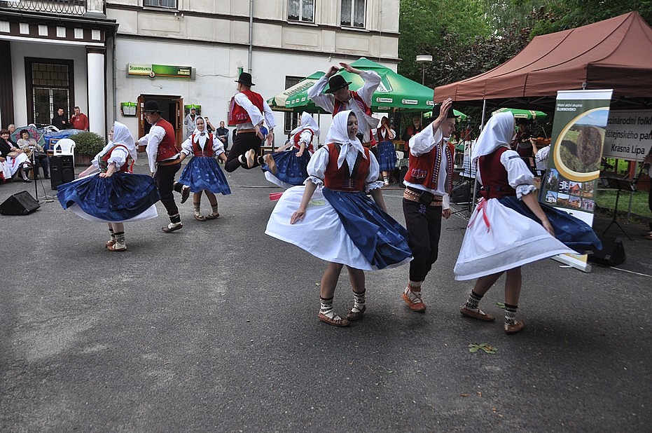 Stalo se oblíbeným zvykem servírovat zájemcům výhodná balení několika produktů v jednom. V pátek 13. června 2014 zažil Varnsdorf hned několik akcí v jednodenním provedení. Ve 12:00 začaly letošní druhé Dobrotovy trhy. V rámci dne MAS Šluknovsko se ale areál varnsdorfské Střelnice zaplnil poněkud více než minule, protože šlo o trhy farmářské a řemeslné a některé stánky byly i za plotem na silnici. Od 17:00 pak jako součást krásnolipského VII. Mezinárodního folklorního festivalu Tolštejnského panství vystoupila řada souborů. Jako první to byla skupina praporečníků Sbandieratori di Orte z Itálie, která se tak zároveň stala vyslancem v nedaleké České Kamenici probíhajícího XV. Mezinárodního hudebního festivalu, kam jsem se letos ke své žalosti nedostal. Následoval krásnolipský Lužičan, finalisté dětské pěvecké soutěže Zpěváček za doprovodu varnsdorfského ŽAKORU, Lidová hudba Ivana Pašky ze Slovenska, folklorní soubor Piros Rózsa z Maďarska, Hanácká Beseda z Kojetína a valašský Rusavjan z Rusavy.