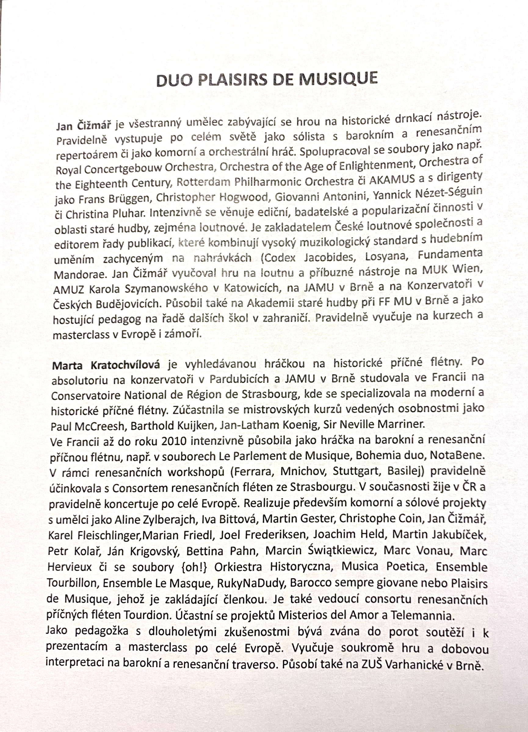 Ve čtvrtek 5. února 2026 v Městském divadle Varnsdorf zahrálo Duo Plaisirs de Musique koncertní program New Memories.