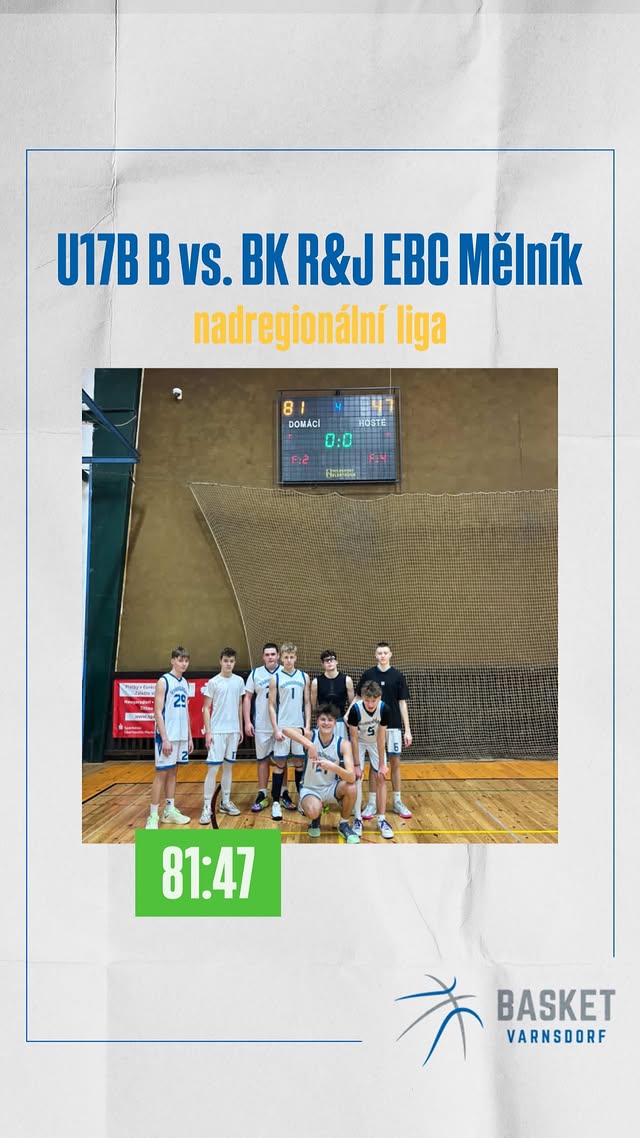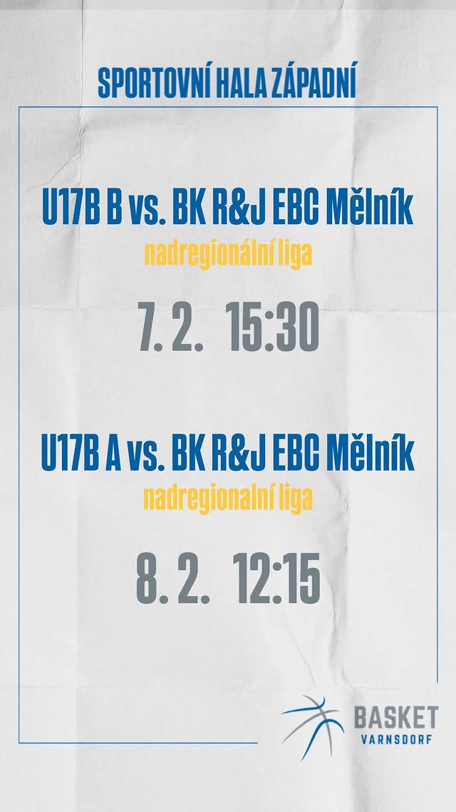 Poté, co v sobotu 7. února 2026 z původních plánů vypadlo utkání kategorie U14, mohli jejich čas obsadit starší kolegové. Odpoledne sportovní halu ve Varnsdorfu obsadilo 13. kolo nadregionální ligy kadetů U17 skupiny D – TJ Slovan Varnsdorf B vs BK R&J EBC Mělník.