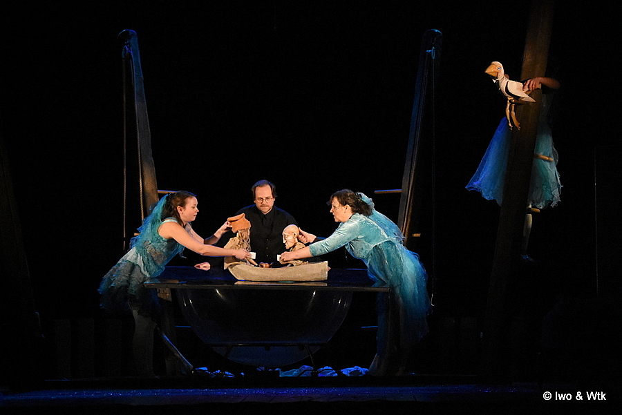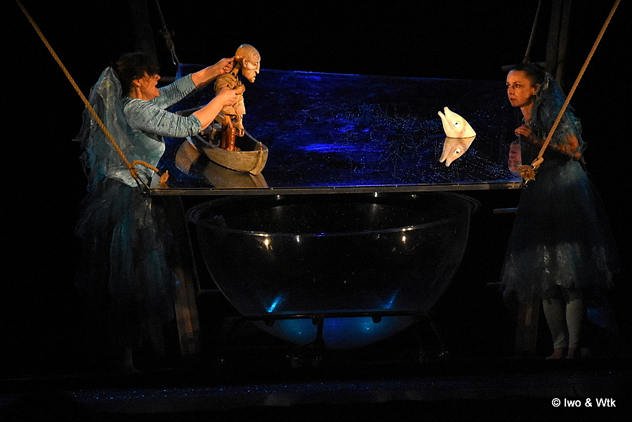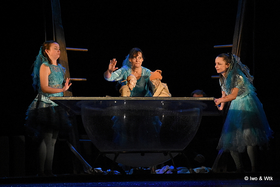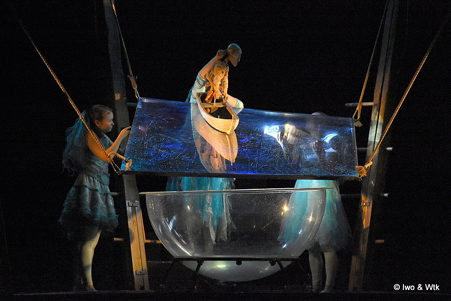 Drak je prostě Drak. Promyšlená netradiční scéna, kombi živých nositelů děje a loutek, všude voda. A vnuk na konci prohlásil „Tak. A jsme zase na začátku…“
