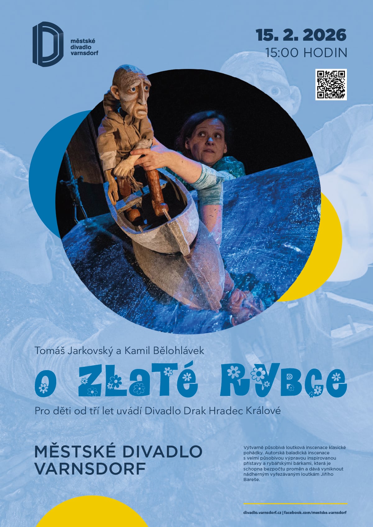 V neděli 15. února 2026 se podařilo Městskému divadlu Varnsdorf dětskému publiku nabídnout zpracování pohádky O zlaté rybce v provedení divadla Drak Hradec Králové.