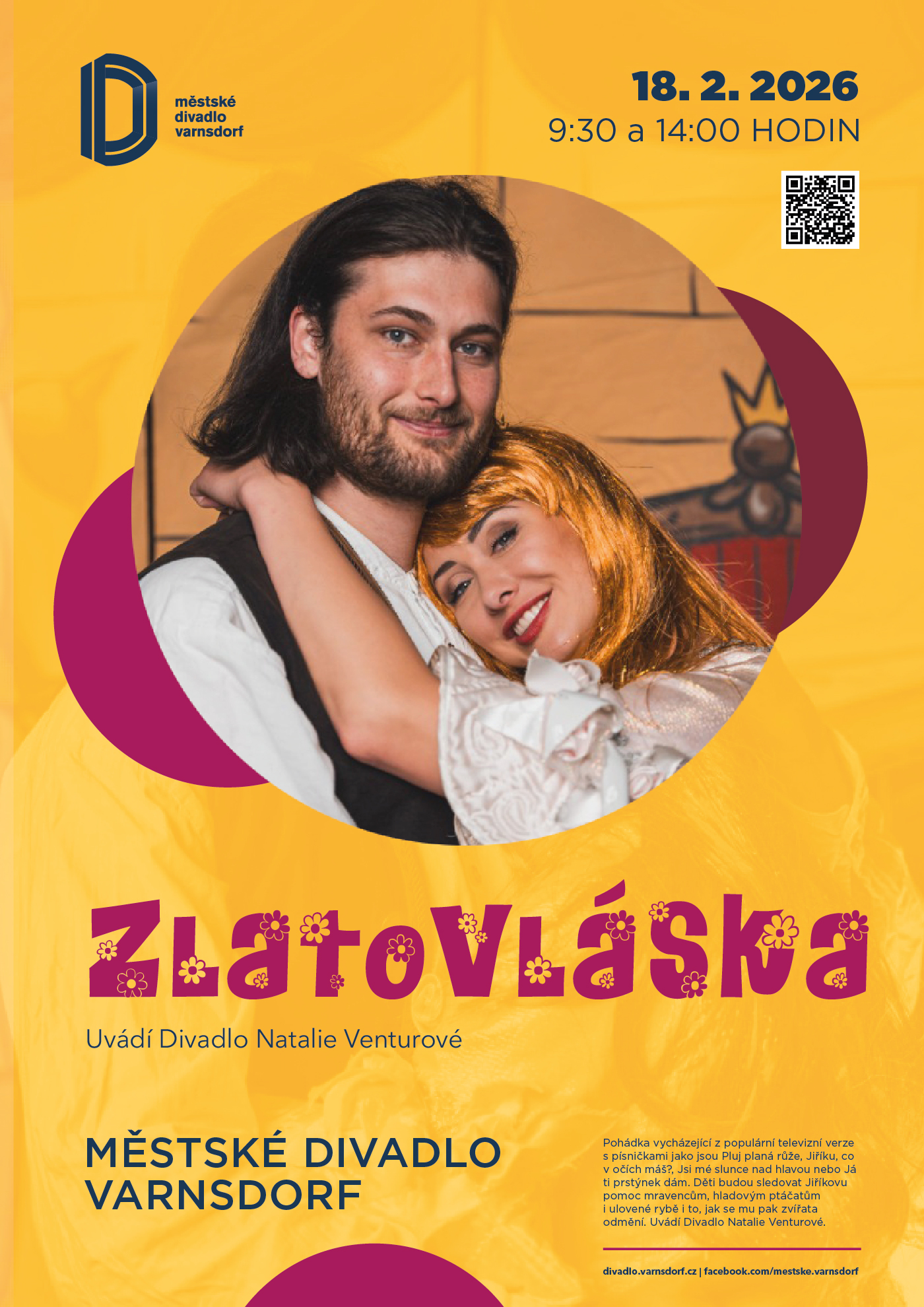 Ve středu 18. února 2026 v Městském divadle Varnsdorf dvoják pohádky Zlatovláska z repertoáru Divadla Natalie Venturové.