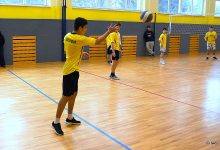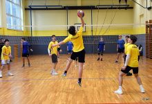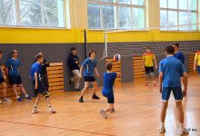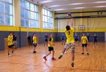 Každý s každým, holky 2 sety do 15, kluci do 20.