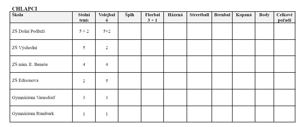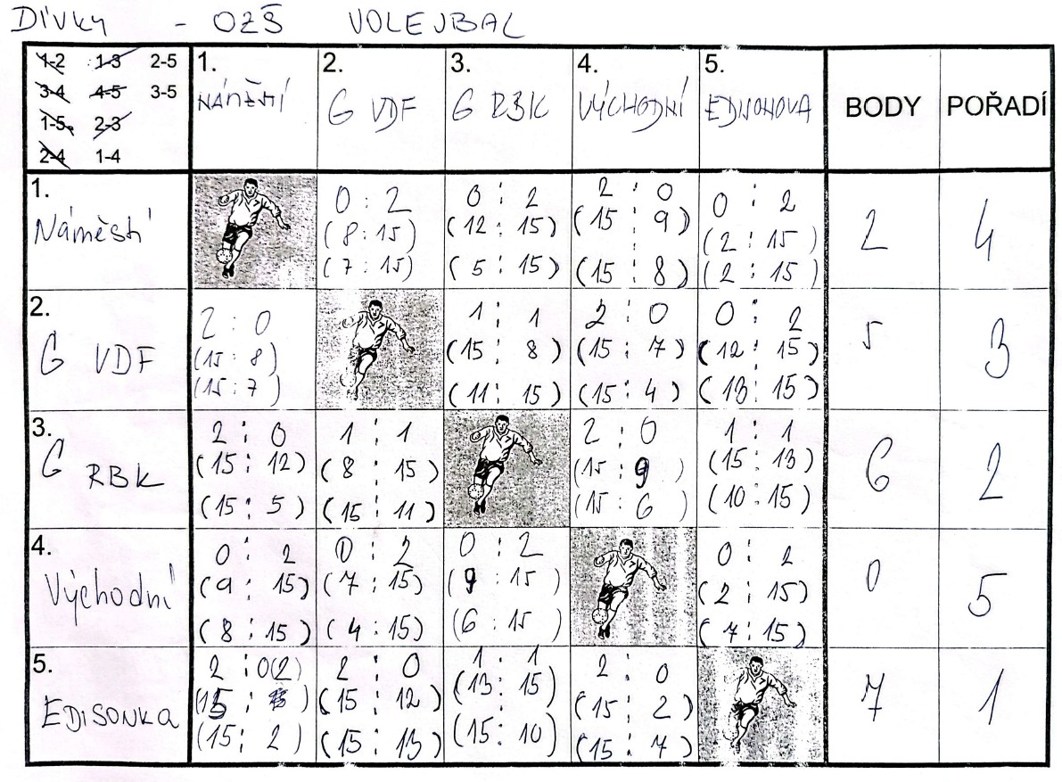 Reprezentanti ZŠ náměstí E. Beneše vstoupili do turnaje s odhodláním. K vidění byla řada vyrovnaných setů, obětavých zákroků v poli i povedených smečí. Přestože naši žáci a žákyně nechali na hřišti maximum, v silné konkurenci to nakonec stačilo na 4. místo v obou kategoriích. Pochvalu si zaslouží jak dívčí tým, ve kterém jsou hráčky z varndorfských volejbalových týmů, tak chlapci, kde si někteří vyzkoušeli volejbal poprvé na tomto turnaji.
