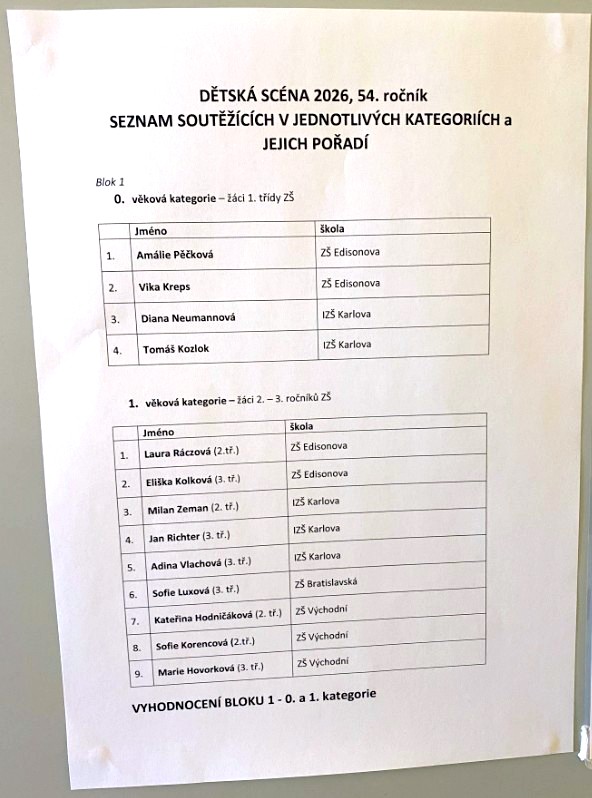 V úterý 10.3. 2026 se v našem DDM konalo městské kolo 54. ročníku přehlídky dětských recitátorů Dětská scéna. Všem zúčastněným recitátorům děkujeme a gratulujeme k pěkným výkonům.