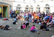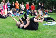 Z ateliéru ZUŠky a výtvarné dílny přes nádvoří a pohybové divadlo do zahrady MŠ (kde se konečně povedeného reparátu dočkalo Zelená se zelená od TPS Magdaléna (chudák ujablkovaný kluk), poté několik záležitostí v parku u knihovny a finále v parku u divadla. Tři choreografie původní, jen umístěné na „nové“ místo, ostatní experimenty vzniklé pro daný prostor a čas. No, aspoň že nepršelo.