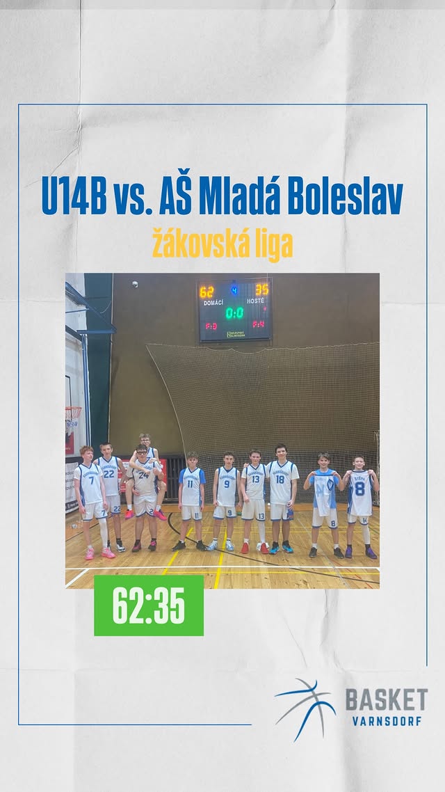 Basketbalový maraton ve varnsdorfské sportovní hale v sobotu 14. března 2026 zahájilo utkání 3. kola ligy C žákovské ligy mladších žáků U14, do souboje nastoupila družstva TJ Slovan Varnsdorf B a AŠ Mladá Boleslav.