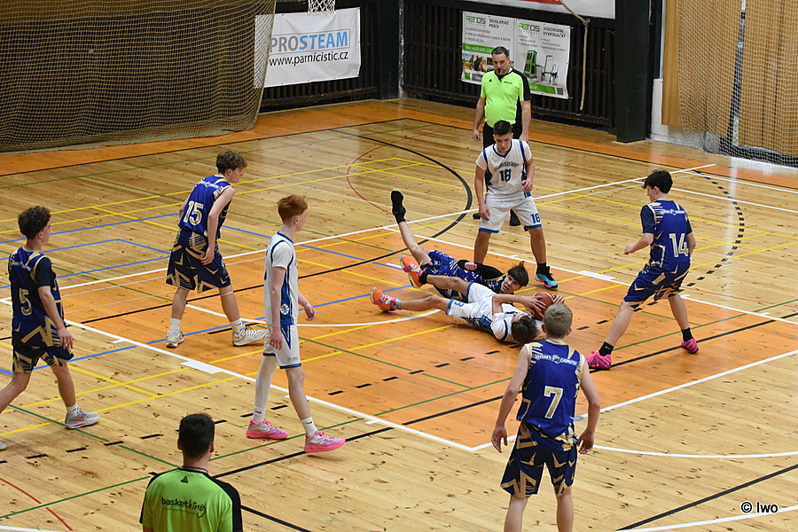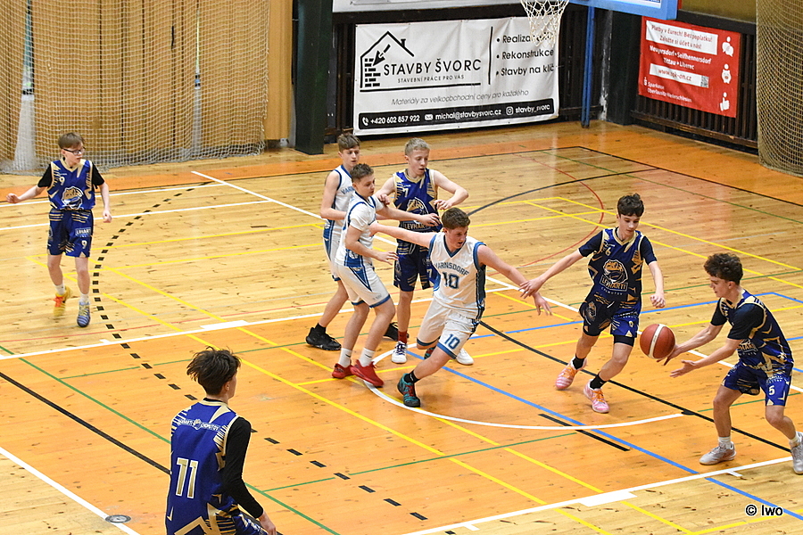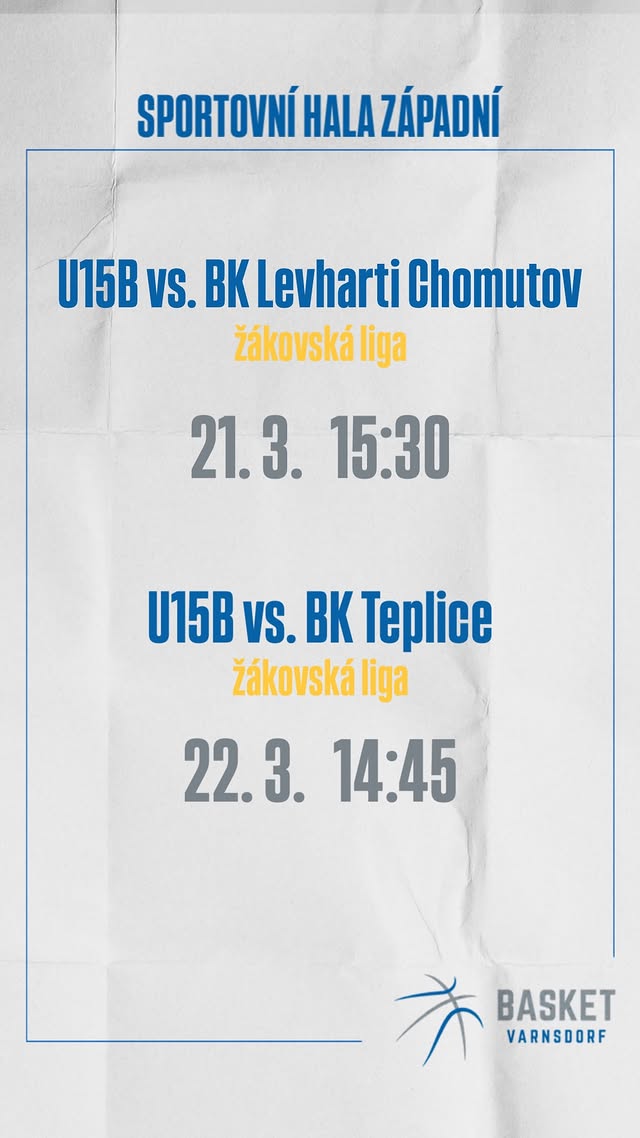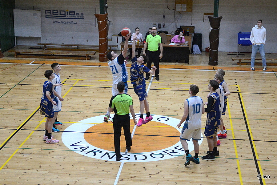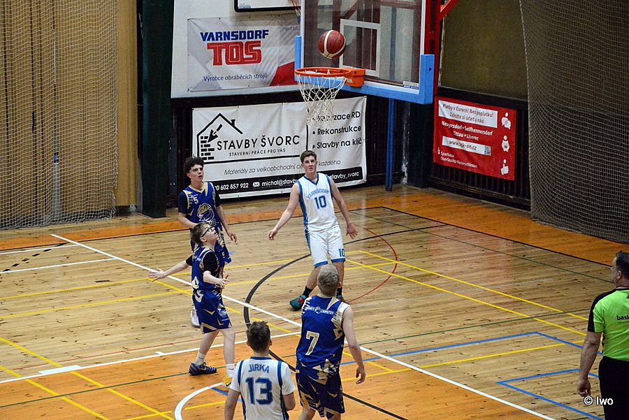 Basketbalová sobota 21. března 2026 po holkách pokračovala ve sportovní hale ve Varnsdorfu 5. kolem A žákovské ligy starších žáků U15 – TJ Slovan Varnsdorf B vs BK Levharti Chomutov.