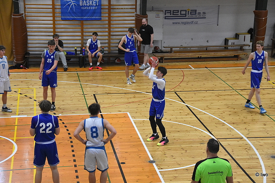 Po sobotní prohře o víkendu podruhé v neděli 22. března 2026 ve sportovní hale ve Varnsdorfu v 6. (závěrečném) kole skupiny C+D o 5. až 8. místo nadregionální ligy juniorů U19 nastoupili kluci TJ Slovan Varnsdorf B, tentokrát proti vs týmu Sokol Vyšehrad.