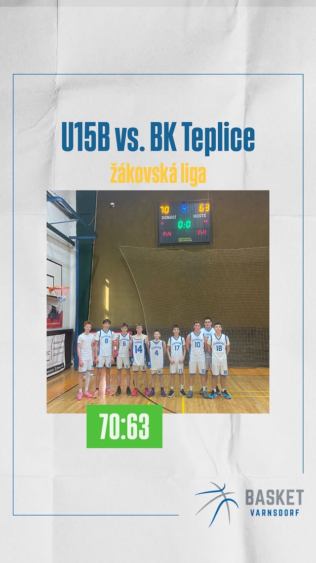 Stejně jako starší kolegové v neděli 22. března 2026 podruhé o víkendu ve sportovní hale ve Varnsdorfu nastoupili do 6. kola A žákovské ligy starších žáků U15 po včerejší prohře kluci TJ Slovan Varnsdorf B, tentokrát proti BK Teplice.