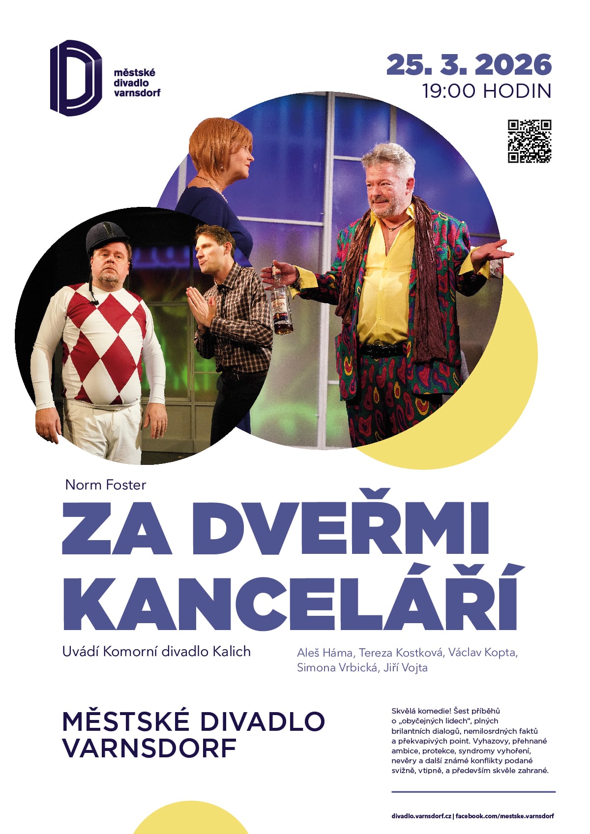 Ve středu 25. března 2026 bylo k vidění ve varnsdorfském Městském divadle představení z repertoáru Komorního divadla Kalich s názvem Za dveřmi kanceláří.