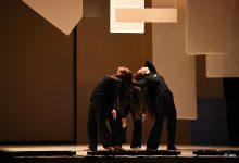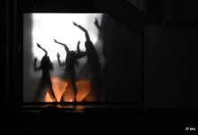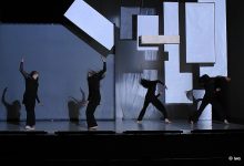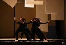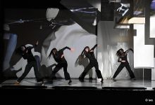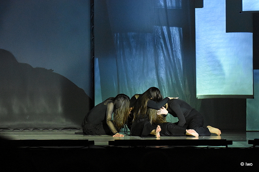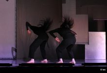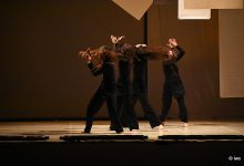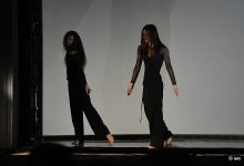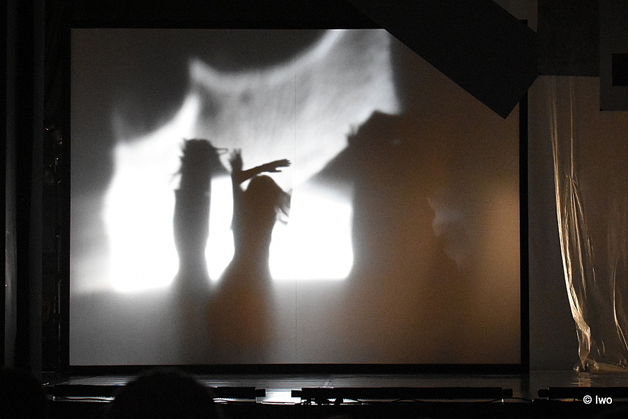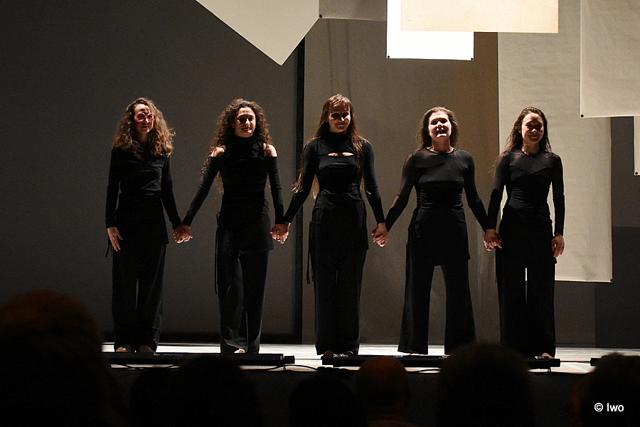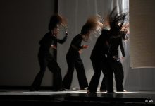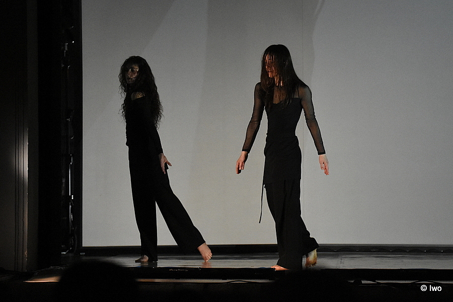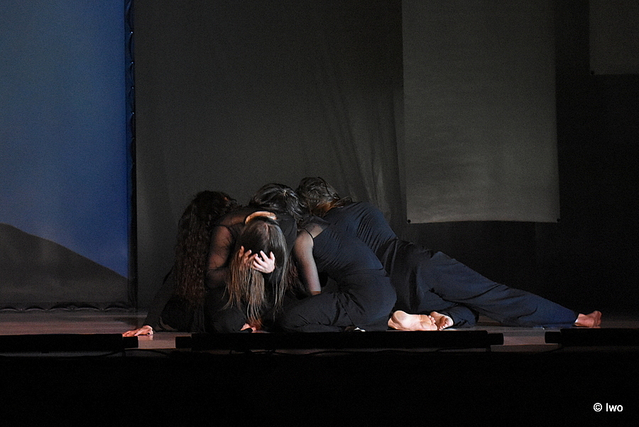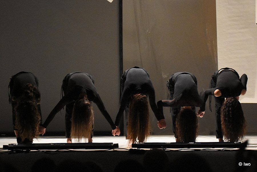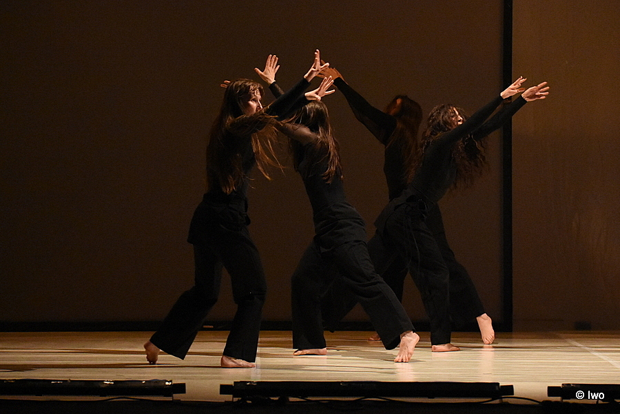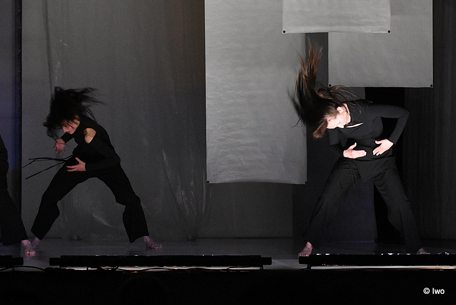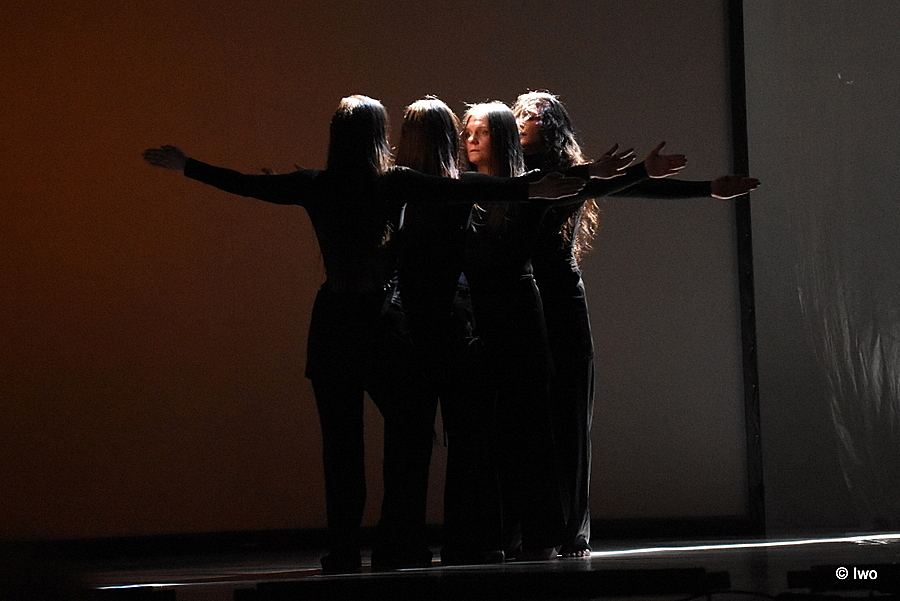 Na jevišti plátna, různorodé plochy, pár světel, sem tam projekce a čtyři tanečnice. Nejprve ticho, pak tepající zvuk – až skoro hluk. A totálně rozhozené rovnovážné ústrojí…