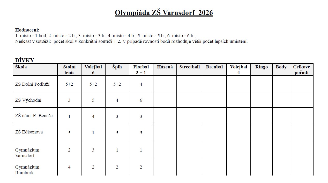 Ve středu 8. 4. 2026 se naši žáci a žákyně zúčastnili Olympiády základních škol, která se konala ve sportovní hale ve Varnsdorfu. Tentokrát mezi sebou poměřili síly ve florbale.