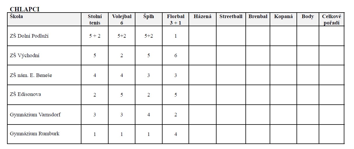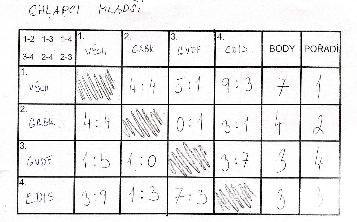 Také chlapci předvedli bojovný výkon. V turnaji sice nestačili na silné týmy z Gymnázia Varnsdorf a ZŠ Dolní Podluží, v ostatních utkáních však díky své bojovnosti uspěli a stejně jako dívky obsadili konečné 3. místo.