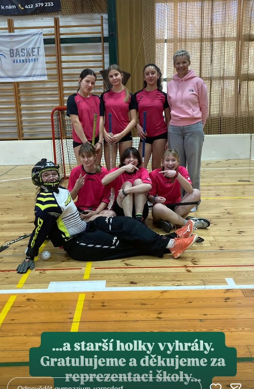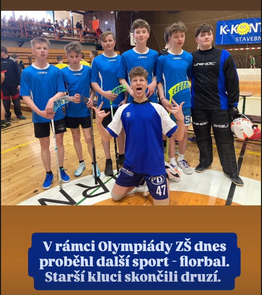 V rámci Olympiády základních škol dnes proběhl další sport – florbal. Starší holky zvítězily, kluci druzí. Mladší holky skončily druhé a kluci čtvrtí. Byl to povedený sportovní den.