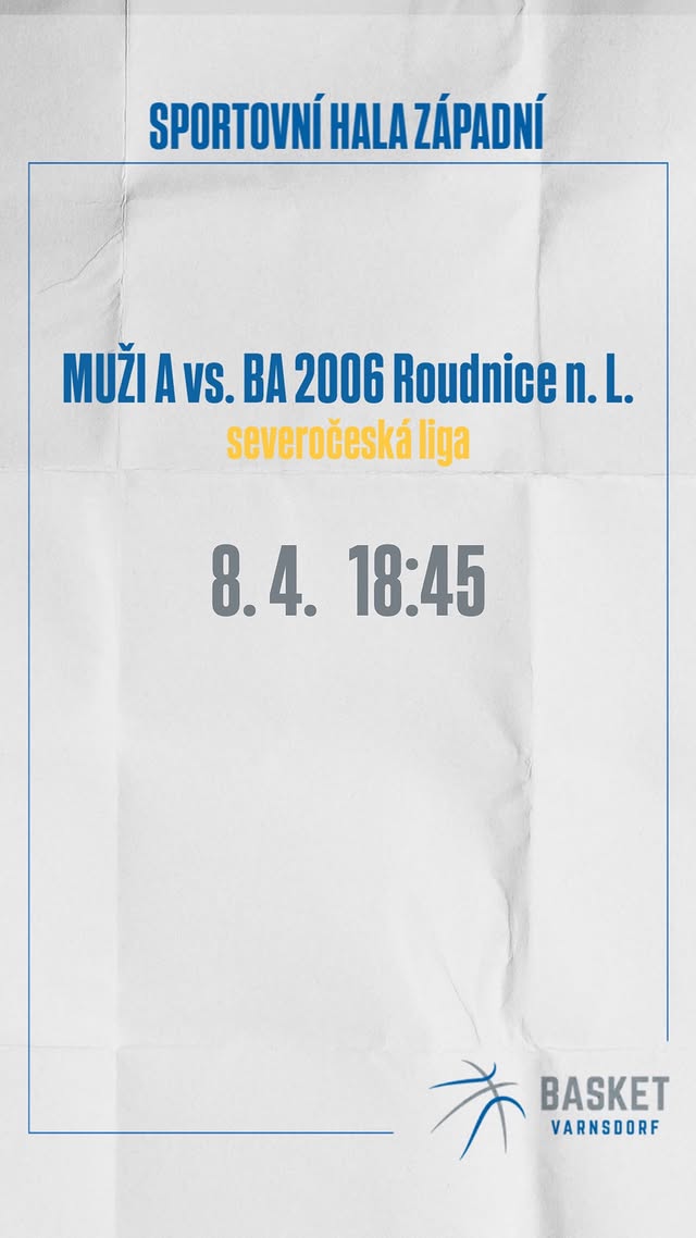 Ve středu 8. dubna 2026 ve varnsdorfské sportovní hale odložené 4. kolo Severočeské ligy mužů, TJ Slovan Varnsdorf vs BA 2006 Roudnice nad Labem.
