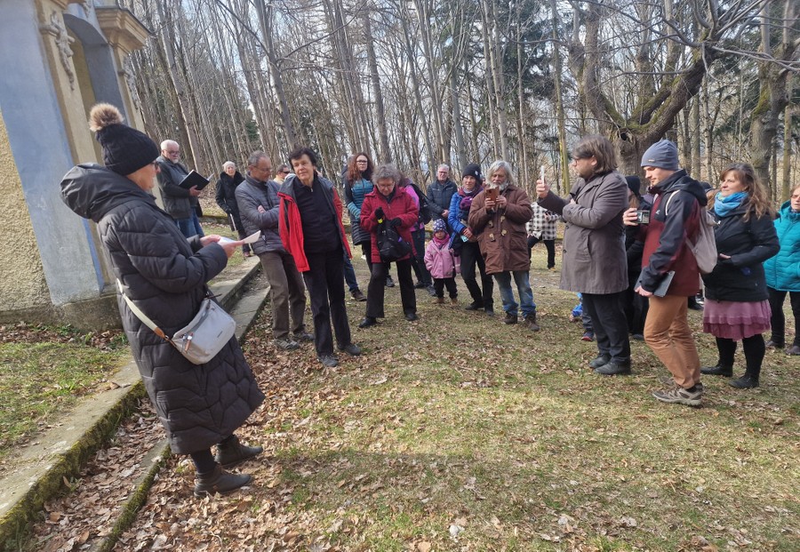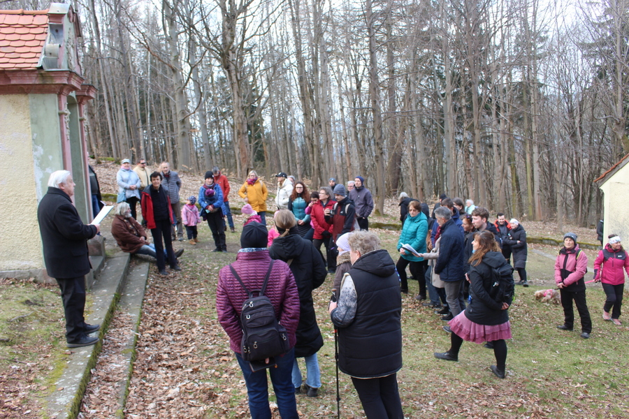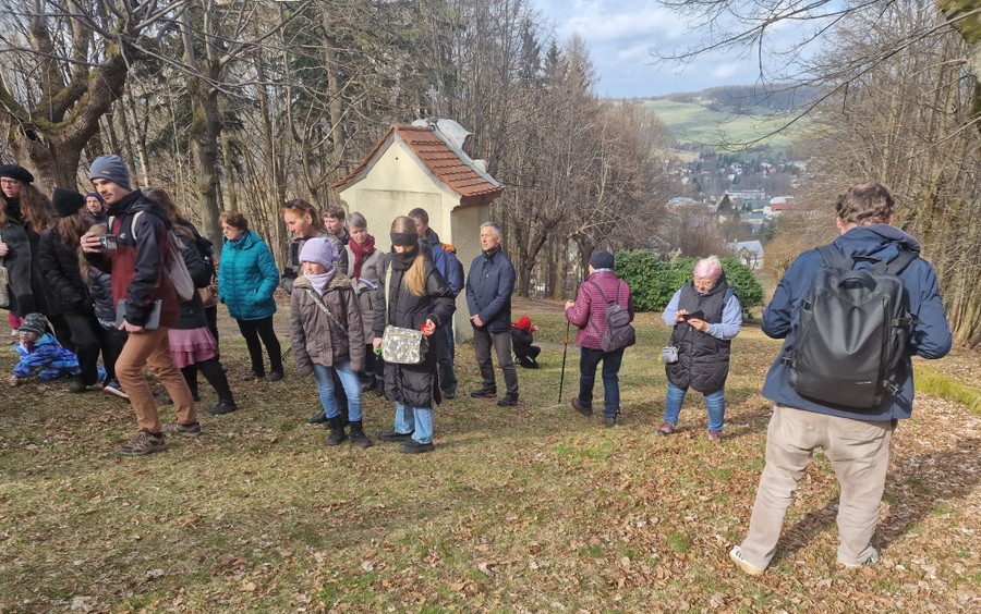 Cestou bolesti 2026Díky vlídnému počasí s občasnými úsměvy slunce se na úpatí památné Křížové hory v Jiřetíně pod Jedlovou sešlo šedesát účastníků širokého věkového rozpětí od malých dětí po důchodce. Tradice byla naplněna i tím, že opět dorazila skupinka asi deseti lužickosrbských příznivců z Bóšic, Budyšína a Róžantu, a tak u tří zastavení zazněla poezie také v překladu do lužické srbštiny. To potěšilo i skupinku členů Společnosti přátel Lužice, kteří do Jiřetína dorazili z Prahy.