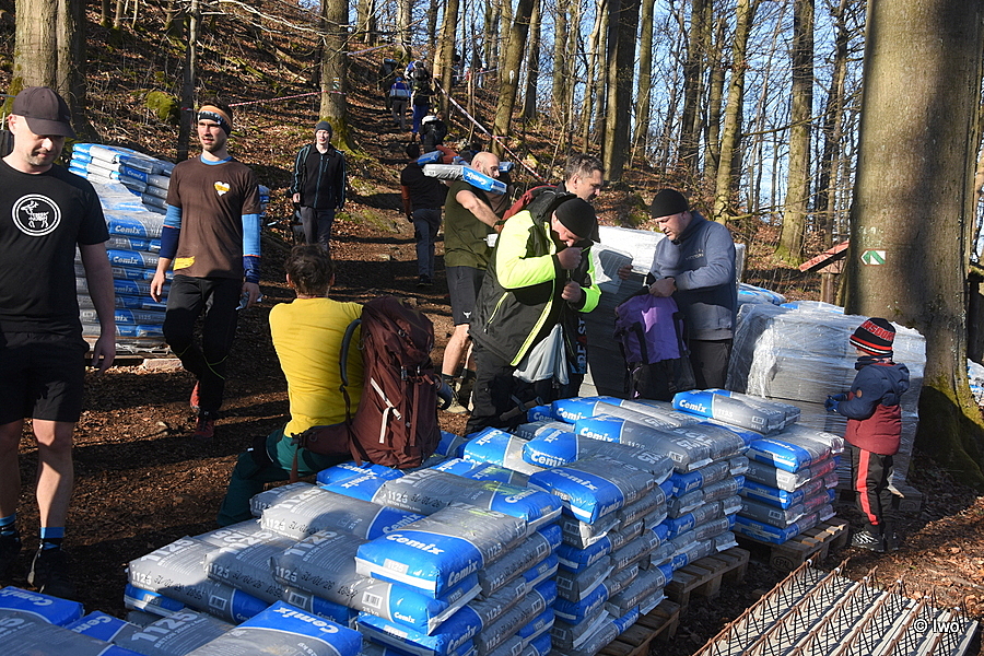 Někde je svět ještě v pořádku. Někde se zrodí myšlenka, zdánlivě bláznivý nápad, vycházející z nějaké potřeby – tu se někdo přidá, tam se jiní nabalí a vznikne akce, kterou by asi málokdo čekal. Osud rozhledny na Vlčí Hoře snad není třeba připomínat. Rozhledna je opravená a funguje, po přilehlé chatě je ale veta. Klub českých turistů v Krásné Lípě a Město Krásná Lípa pokračují v opravách a na současných troskách by měla vzniknout vyhlídková terasa. Aby se tak mohlo stát, je potřeba dostat nahoru na horu stavební materiál – především cement (na místě byly navíc i překlady a tvárnice). Zapojil se Běžecký kroužek Varnsdorf, SAK Rumburk, Stezky z lásky, stavební firma, místní hasiči, a spousty, spousty dalších – pardon, vyjmenovat všechny nedovedu, ani je neznám… A navíc šlo a akci s přesahem – za každý odnesený pytel 20 Kč na podporu Tomáškova příBĚHu.