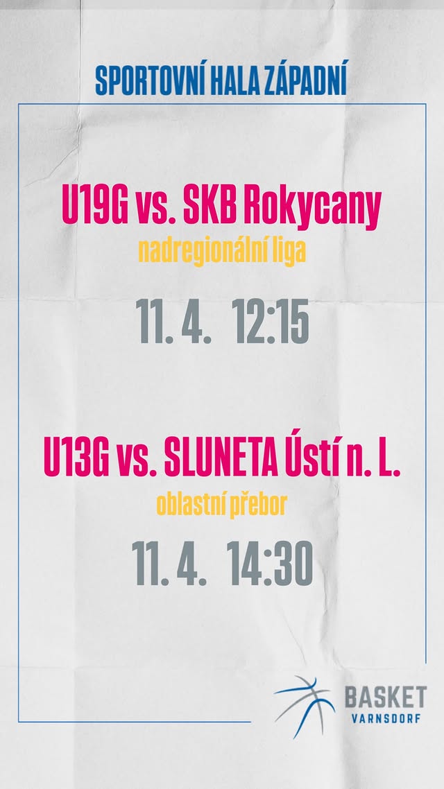V sobotu 11. dubna 2026 ve sportovní hale ve Varnsdorfu 13. kolo nadregionální ligy juniorek U19 (skupina A), TJ Slovan Varnsdorf vs SKB Rokycany. 73:51 (13:9 / 36:27 / 55:36) TJ Slovan Varnsdorf SKB Rokycany Tabulka