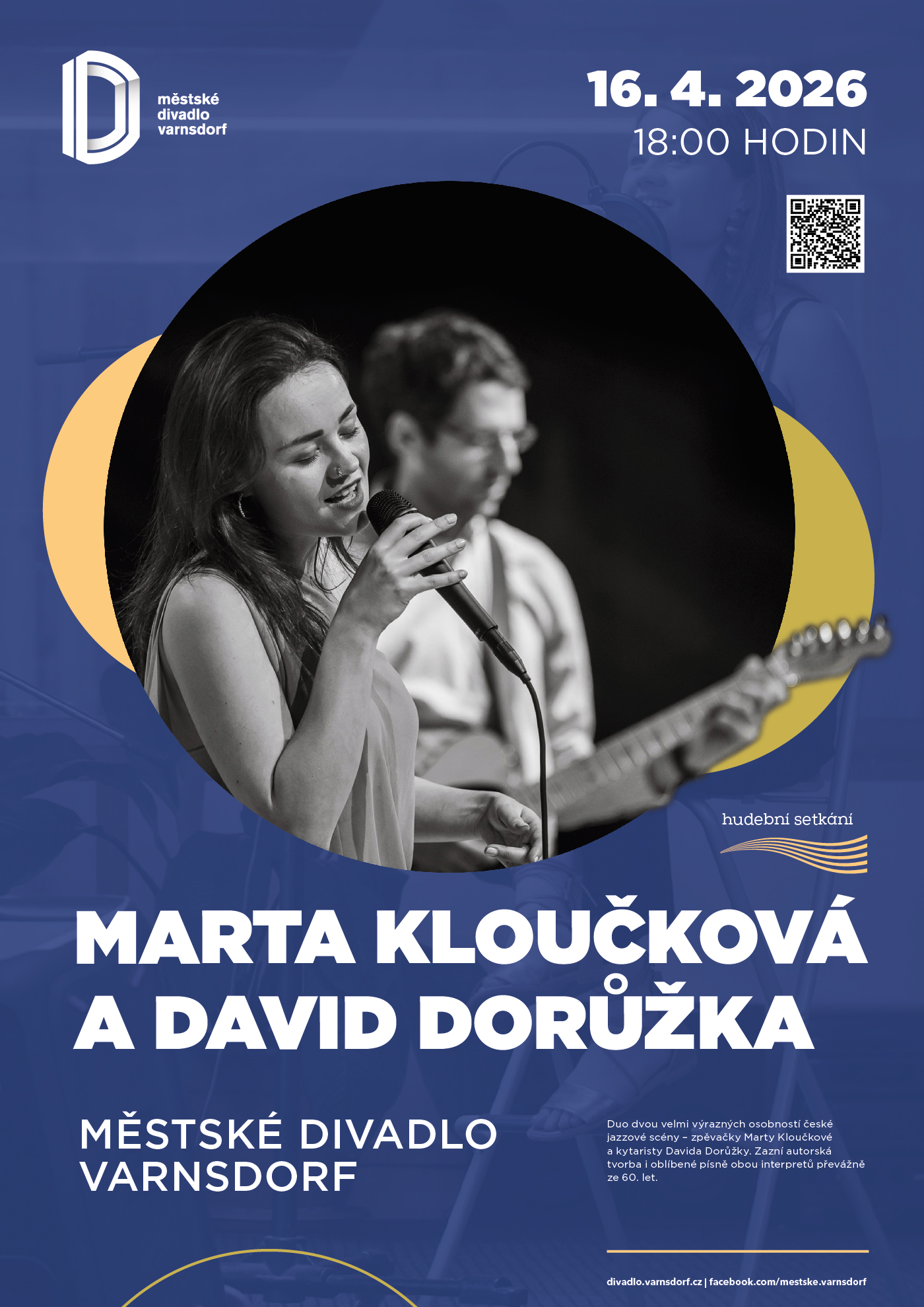 Ve čtvrtek 16. dubna 2026 ve varnsdorfském Městském divadle koncert dua Marta Kloučková & David Dorůžka.