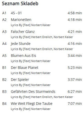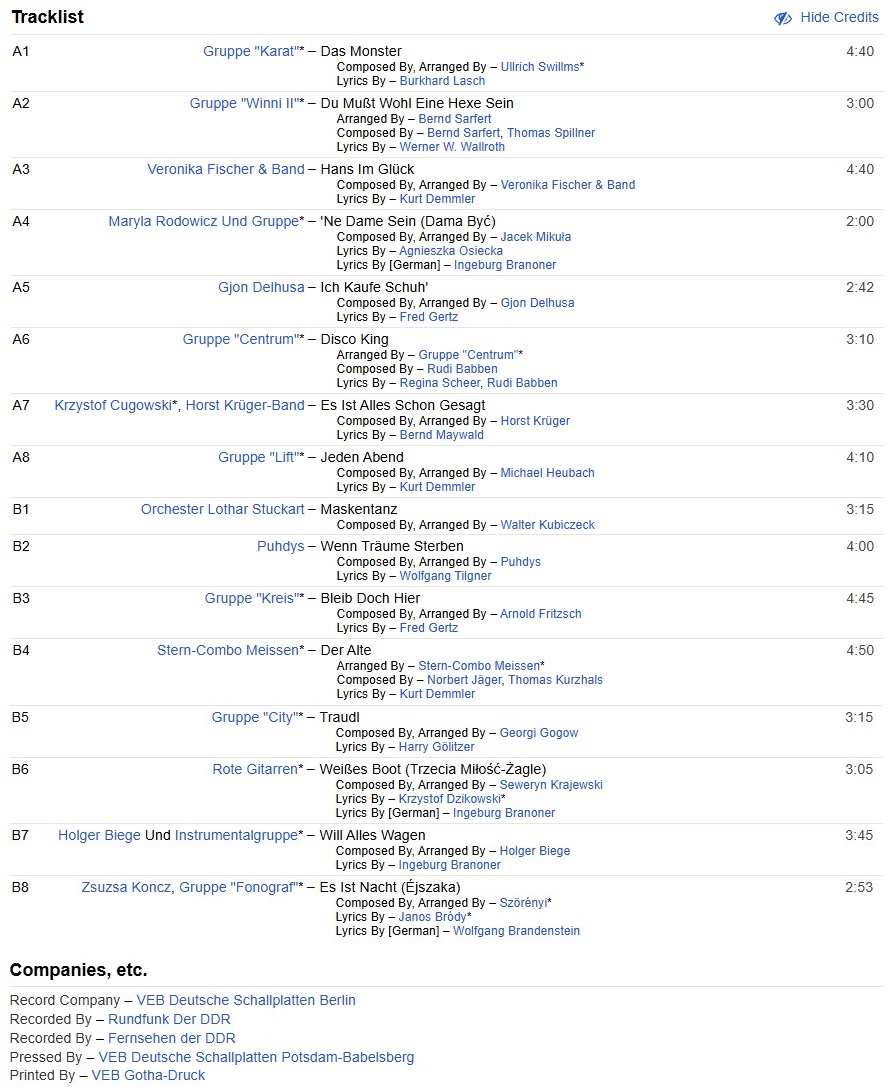Taková vhodně přechodová deska – na obalu je vyjmenována jen část německých kapel z výběru (zhusta jde o výše uvedené), ale figuruje tu i Maryla Rodowicz nebo Zsuzsa Koncz s Fonografem – takže následovat budou Maďaři