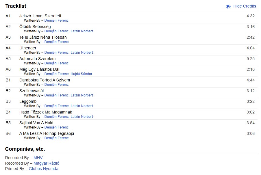 Na tomhle albu je vidět, jak to Maďaři měli jinak než ostatní. Vcelku standardně mysleli na svět kolem – popisky běžně v angličtině a ruštině.