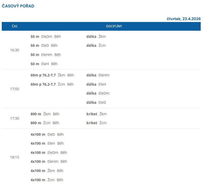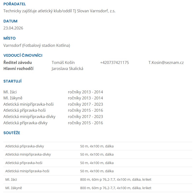 Ve čtvrtek 24. dubna 2026 zahájilo atletickou sezónu 1. kolo krajského přeboru družstev LKAS nejmladšího a mladšího žactva na městském stadionu ve Varnsdorfu.