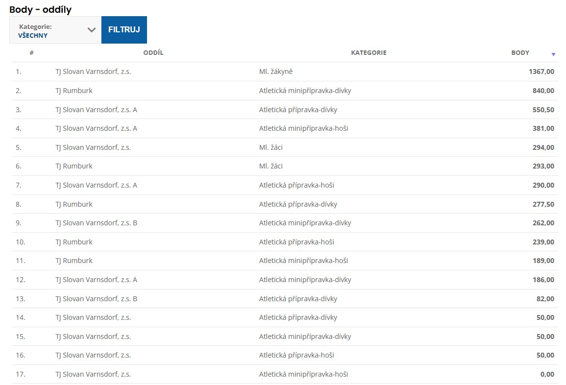 Ve čtvrtek 23. dubna se konalo první kolo družstev nejml. a ml. žacrtva, dle pravidel se koná v oddíle a až od druhého kola se utkáme s více soupeři. Počasí nám přálo a mnoho výkonů bylo skvělých, i několik osobních rekordů bylo překonáno. Spolu s námi závodily děti z TJ Rumburk.