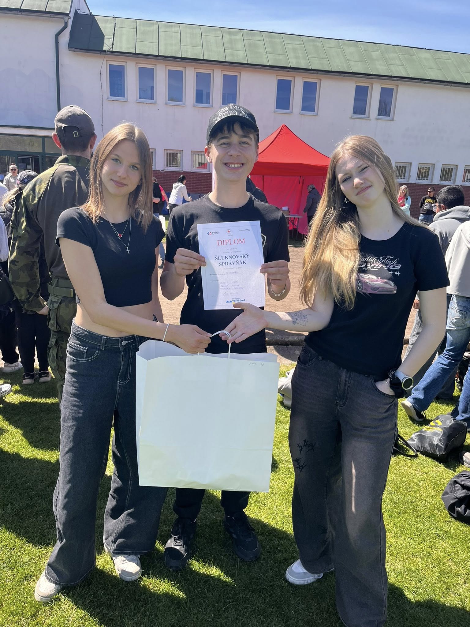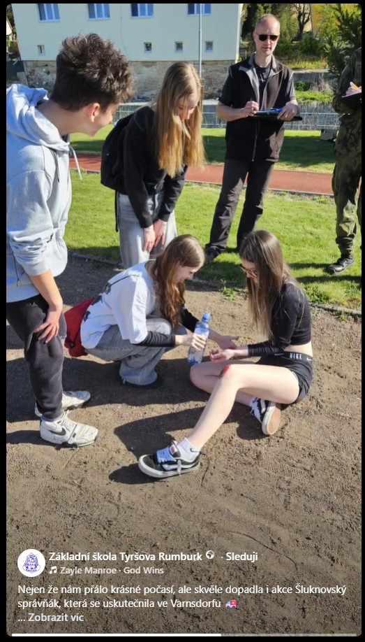 Nejen že nám přálo krásné počasí, ale skvěle dopadla i akce Šluknovský správňák, která se uskutečnila ve Varnsdorfu. Žáci si vyzkoušeli náročné i praktické disciplíny jako resuscitaci, řešení dopravní nehody nebo krizové situace, kde šlo o rychlé rozhodování i týmovou spolupráci. Náš tým ve složení Valča Panošková, Bára Budaiová a Harry Singh se mezi 13 týmy rozhodně neztratil a vybojoval parádní 4. místo. Moc gratulujeme k výsledku a děkujeme za skvělou reprezentaci! Velké díky také organizátorům za perfektně připravenou akci – bylo to skvělé a už teď se těšíme na další ročník!