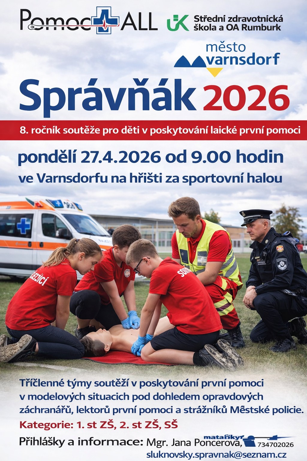 V pondělí 27. dubna 2026 se opět v okolí sportovní haly ve Varnsdorfu uskutečnil 8. ročník soutěže v poskytování první pomoci pro děti Správňák.