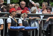 Už ke konci projevů se bokem začalo šikování k přestřižení pásky. Nůžky na polštáře, vysoké podpatky do štěrku a já raději zůstávám na nástupišti, aby mne dav, zaznamenávající slavné šmiknutí, náhodou neušlapal. Pak trochu zmatky – všichni se hrnou do vlaku, aby se zúčastnili první oficiální jízdy po obnovených kolejích. Jenže ouha, vlak stojí na špatné koleji, která nemá do Poustevny výhybku, musí vyjet z nádraží a vrátit se na správné nástupiště. Takže všichni zase běží zpátky… Obyčejně bývají Němci velmi pintlich, ale tady jim to zřejmě česká spoluúčast trochu rozložila. Následuje vtipná hláška – smí se jen do dvou vagonů ze tří (ten poslední se asi nevejde v Poustevně na nástupiště, či co) a nastupovat smějí jen ti, co mají modrou pásku na ruce! Schovávám se za -miw-ova záda a nikdo se nám nesnaží klást odpor, když nastoupíme…